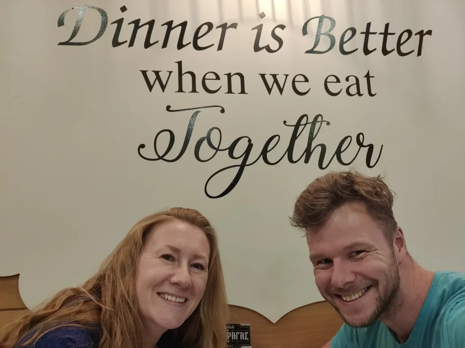Přijeli jsme tam a hned mezi dveřmi zjistili, že Lénino letadlo má 50 minut zpoždění. No, venku už byla docela zima a na letišti bylo vedro. Vedro vyhrálo a tak jsme chodili po letišti tam a zpátky a dobývali pokémony. Byla to nuda, ale lepší než čerstvý vzduch parkoviště. No a pak jsme se konečně dočkali <3 Léňa se objevila v příletové hale a jsme tady všichni. Konečně.Následovala cesta domů, která nám zabrala přes hodinu a pak jsme spolu šli na večeři asi 15 m od našeho ubytka. Potřeboval jsem počkat na Léňu, abychom tam šli. Proč? Fotka napoví :)